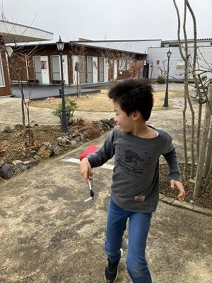まだ冬休み中ということもあり小学生や幼稚園児の参加も多く、寒いけど凧を作った後は農園や千の杜敷地内を凧をもって走り回る子どもたちの様子がありました。