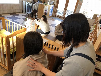 子ども達は気持ちよさそうにしていました。マッサージの後は体重測定をしたりお母さん同士でのお話を楽しんだりと穏やかな時間でした。