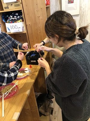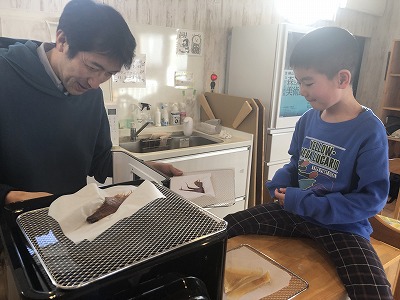 5日は「ミニ凧つくり」「フードドライヤーでささみジャーキー作り」