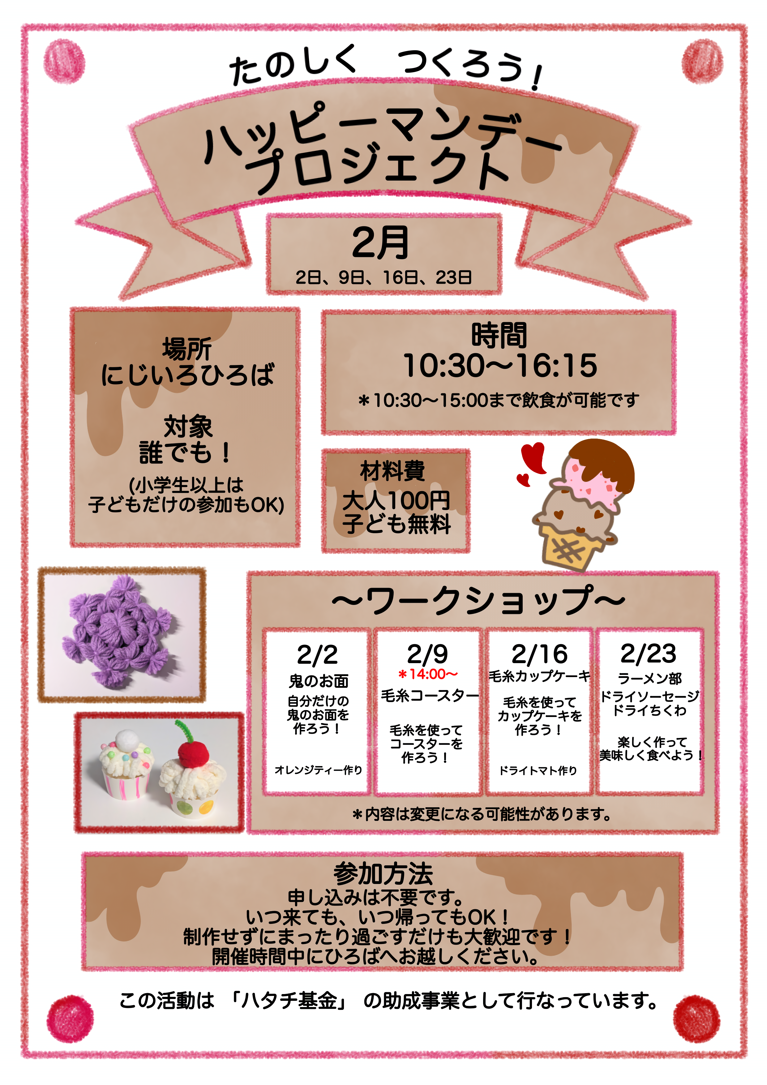 場 所:にじいろひろば(宮城県石巻市大街道西2-2-25千の杜学びのショップ棟C)
