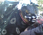 1月15日、この獅子舞が小渕浜の神社にてお披露目されました。太鼓と笛の音に合わせて舞う獅子舞はとっても優雅です。こちらの獅子舞は「小渕浜の獅子舞復活プロジェクト」のため柴田が制作したものです。