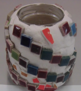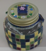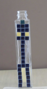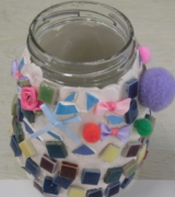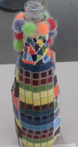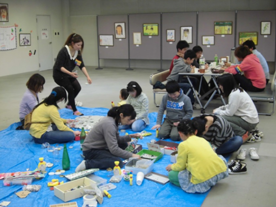 また展覧会と同時に開催した「モザイクアート花びんコンクール」。その場で誰でもモザイク花びん作りにチャレンジできます。