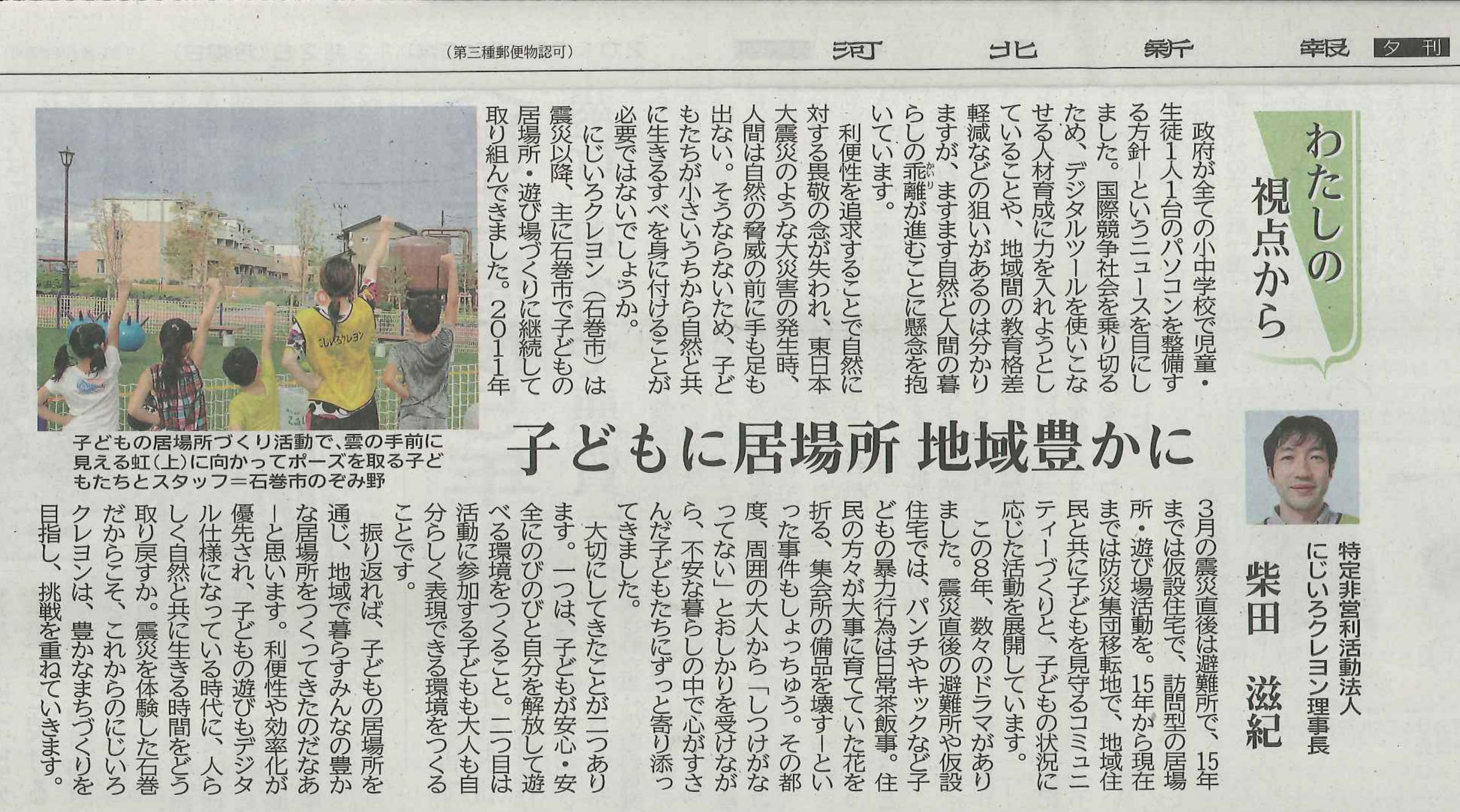 先日(10月31日)仙台放送の「Live Newsイット!」内でにじいろクレヨンの活動が放送されました!
