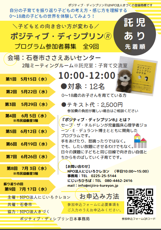 会場:石巻市ささえあいセンター 2階ミーティングルーム *託児室:子育て交流室