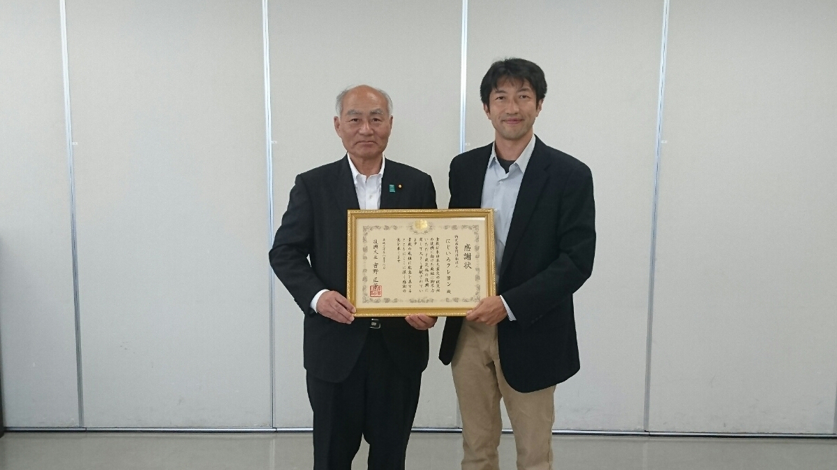 4月30日、石巻市社会福祉協議会にて行われた授与式に代表の柴田滋紀(おんちゃんししょう)が行ってまいりました。