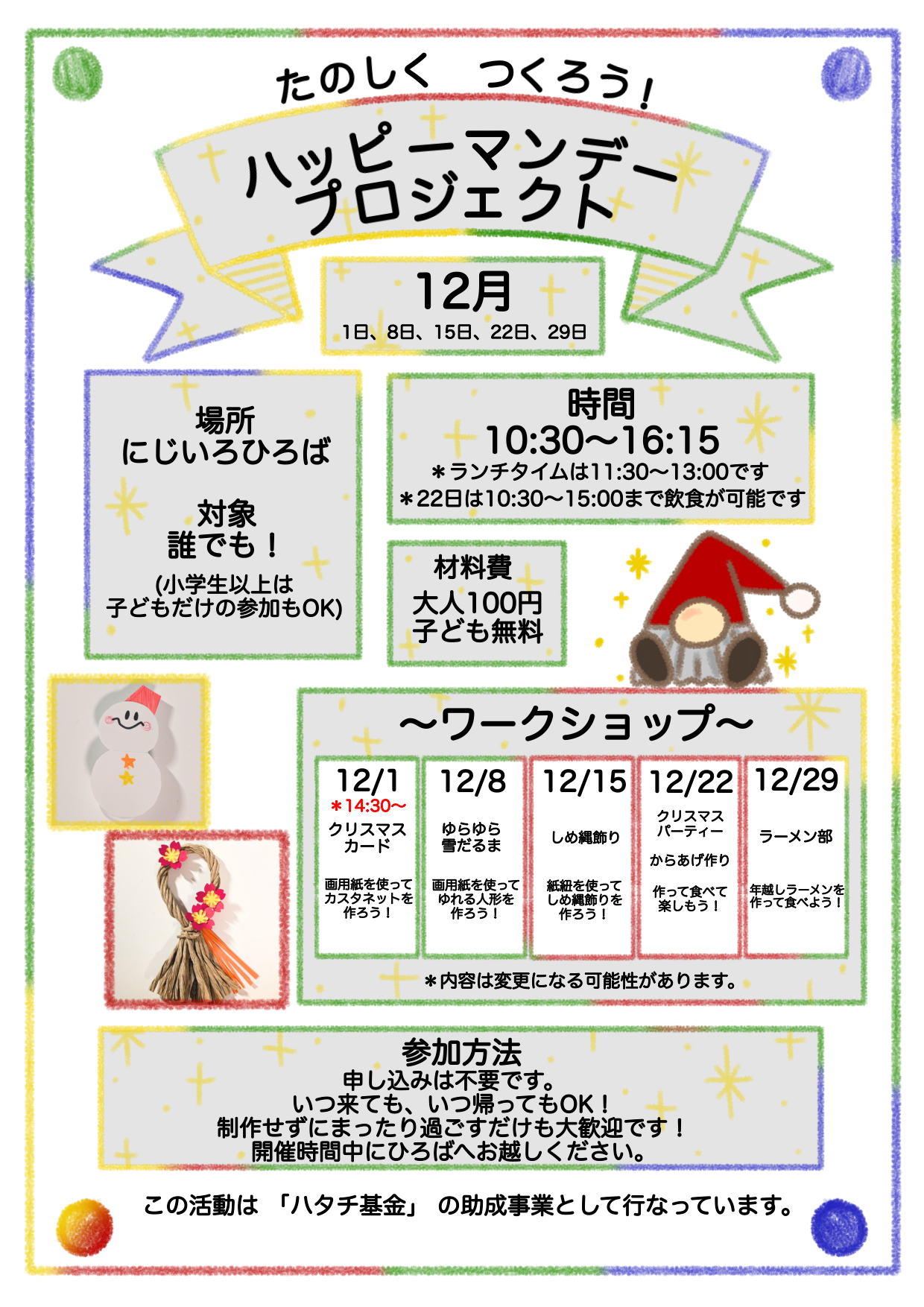 場 所:にじいろひろば(宮城県石巻市大街道西2-2-25千の杜学びのショップ棟C)