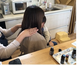 10日は「ママのリフレッシュ」4月から仕事復帰を控えていてゆっくりできそうもないから最後に~なんてお母さん達も多かったです。もちろん初めての方も。自分の好きなアロマの香りを選んで。その日は終わった後もひろば内はアロマのいい香りが♪