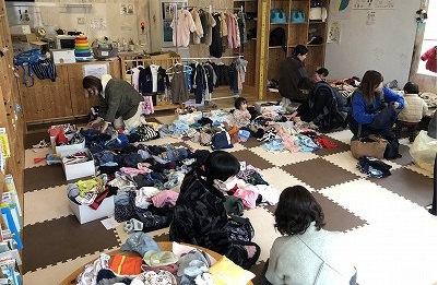 まずは2日の「にじいろバザー」からのスタートです。おさがり品の募集をしたところたくさんの方が快く寄付してくださりたくさん集まりました~